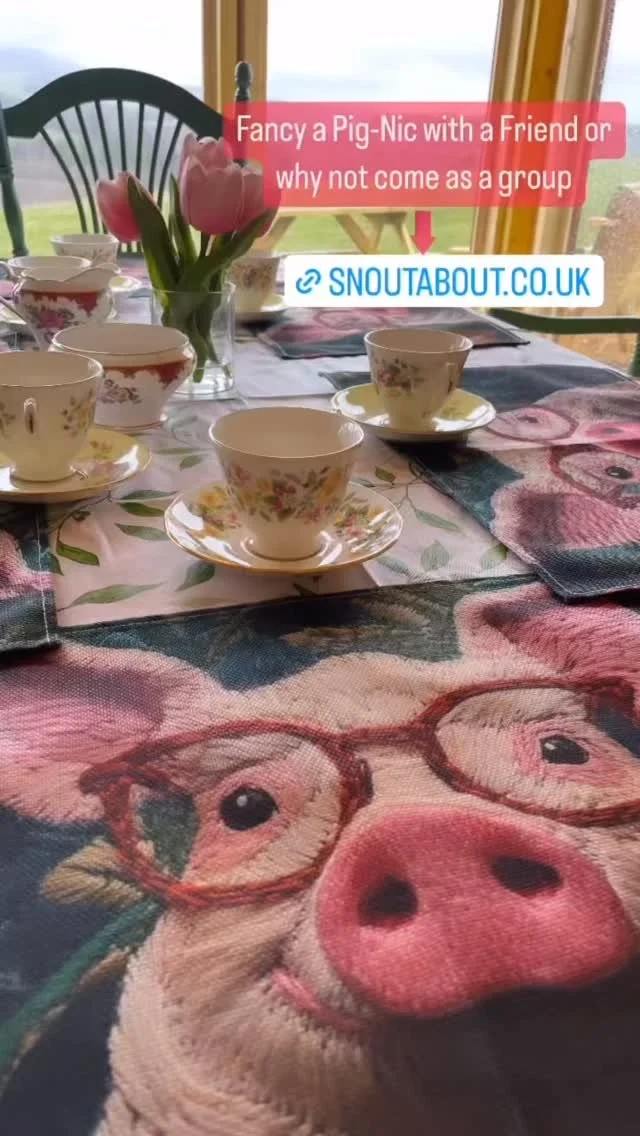 Once you are fully satisfied with your piggie time, you will continue on to the fabulous PIG-Nic Hut with views over the countryside, where a delicious sweet treat PIG-Nic with Tea Pigs tea awaits you!