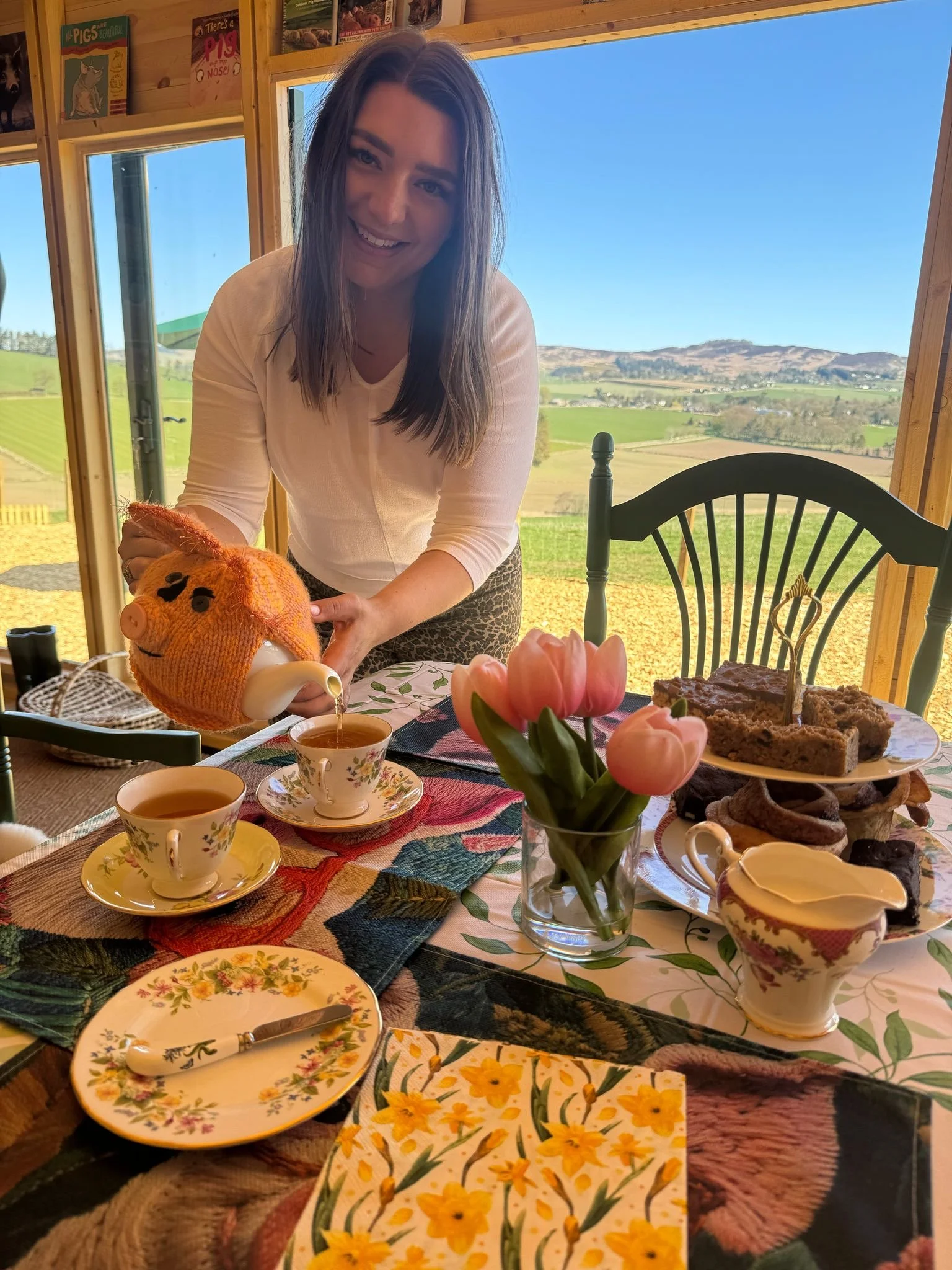 Once the pigs are back in their field and you are fully satisfied with your piggie time, Kirsty will guide you towards a separate area where a delicious sweet treat PIG-Nic will take place in the fabulous PIG-Nic Hut, with breathtaking views over the countryside.